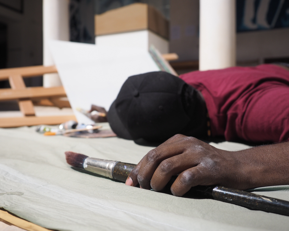 Victor Sitali is both deaf and speechless. Painting is a big part of his communication with the world, and he wanted to create an image that portrayed this.
